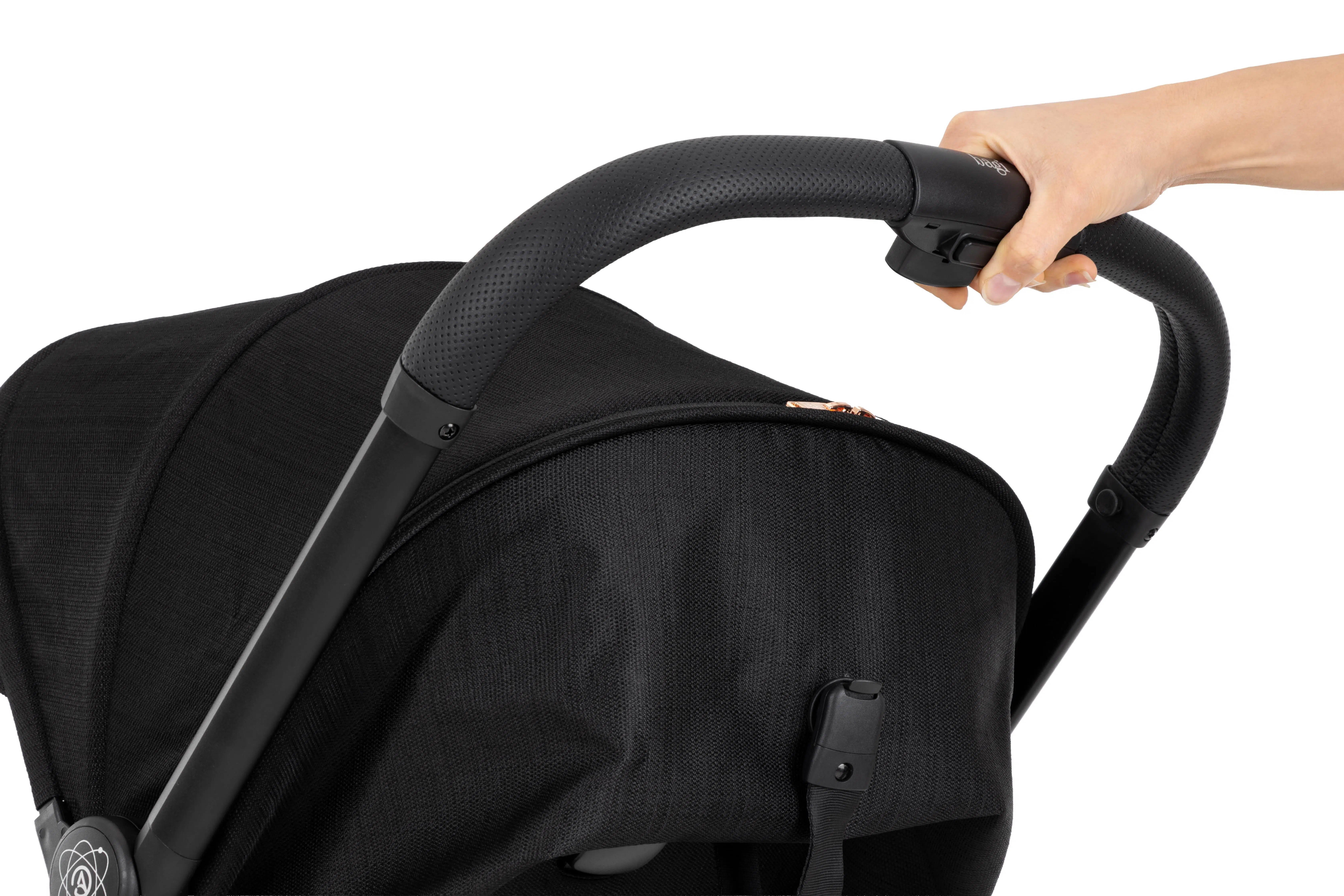 Ultra nefes alabilen kumaş yapısı, terlemeyi minimuma indirirken, deri tutma kolu ebeveynlere şık ve yumuşak bir dokunuş hissi verir.