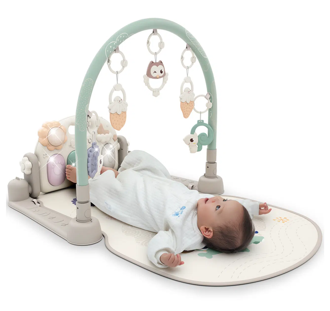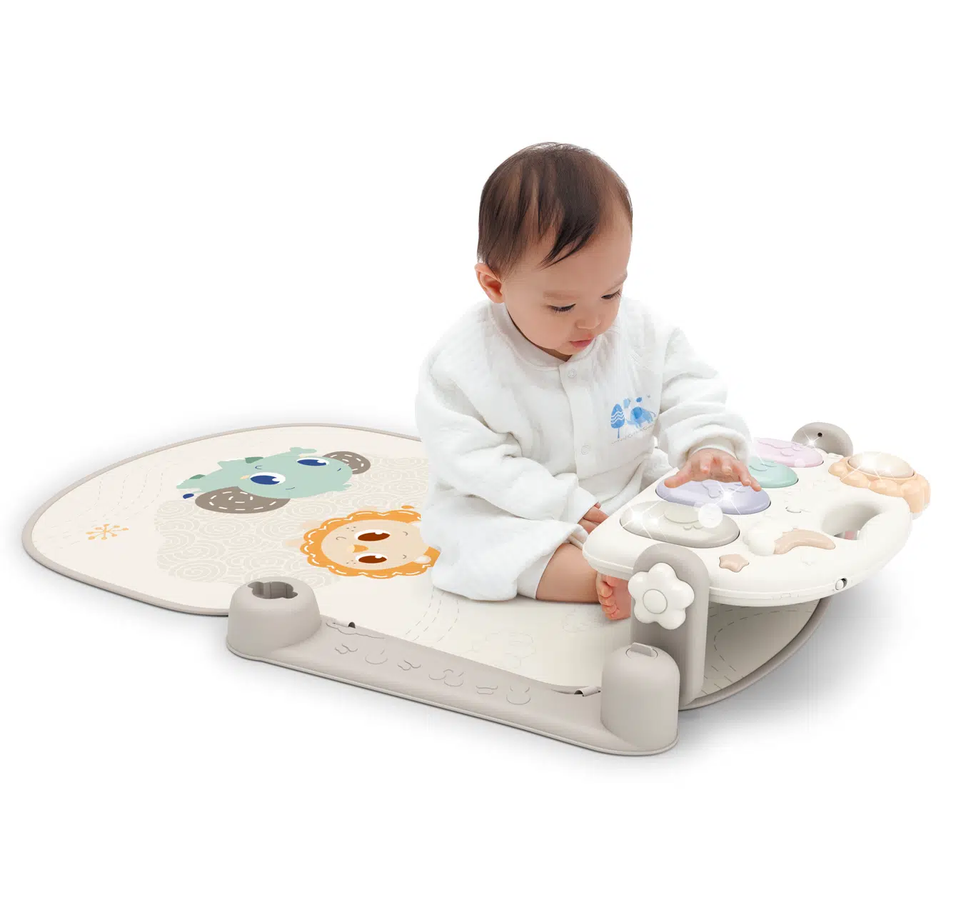 Canlı renkleri, sevimli karakterleri ve ayak ucuyla hayat bulan piyano melodileriyle bebeğinizi her gün yeni bir maceraya davet eder.